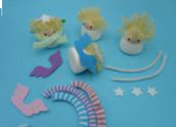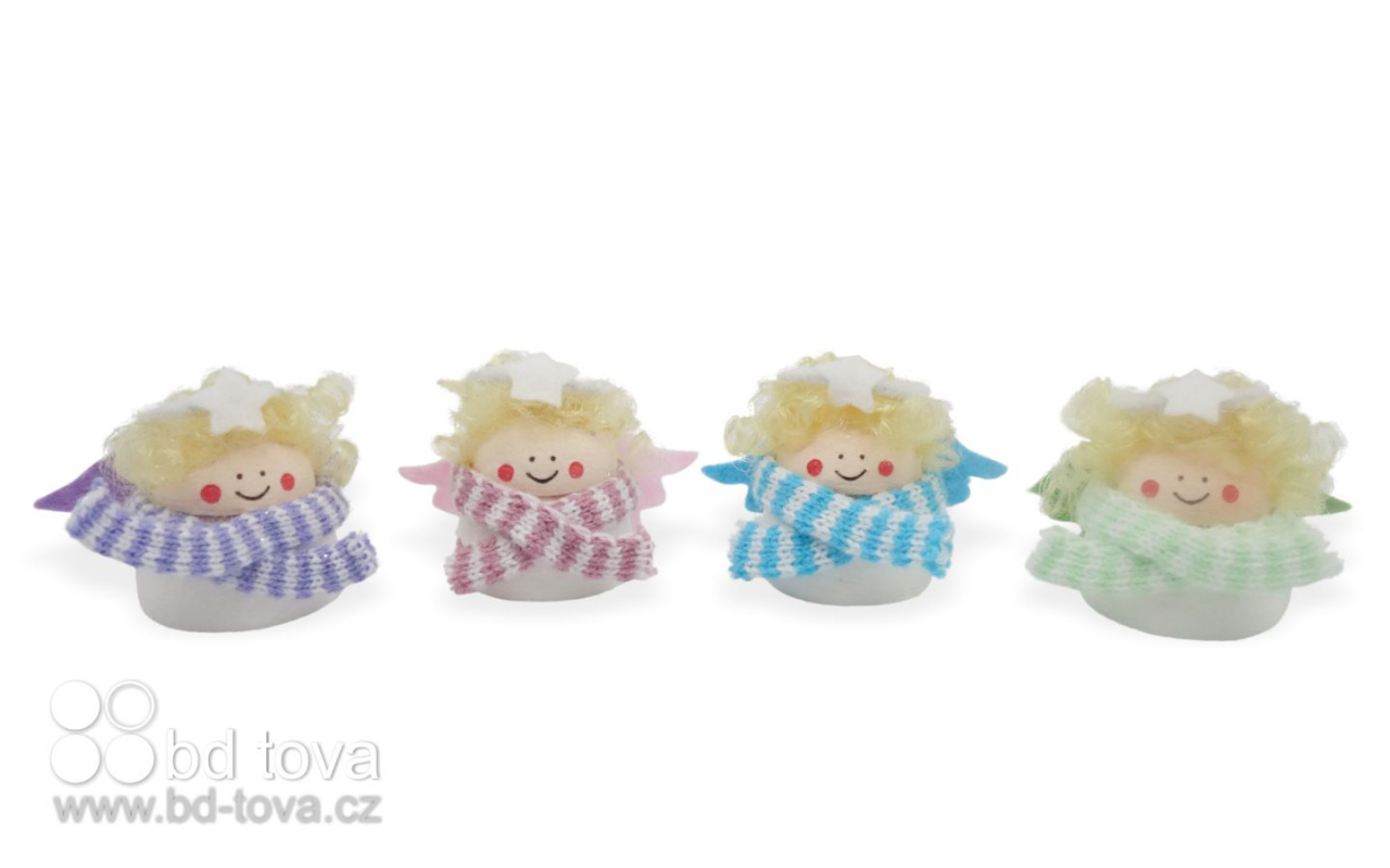 Žinylku (svatozář) rozstřihneme na 4 stejné díly. Jednotlivou žinylku stočíme do kolečka a konce slepíme přes sebe nebo zakroutíme. Svatozář přilepíme na hlavu a na ni hvězdu. Pod hlavu přilepíme přes sebe do kříže šál. Zezadu na tělo přilepíme křídla.