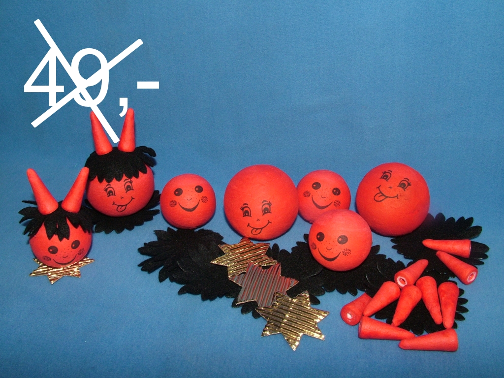 The package contains a mix of heads, horns, and cut-outs for making 5 pcs devil´s heads,