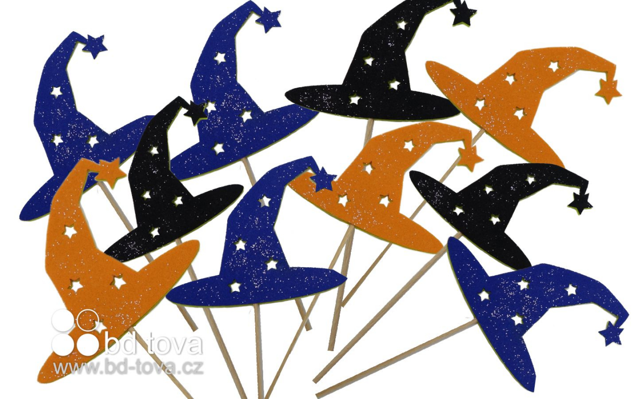 Starry witch hat on a stick 10 pcs