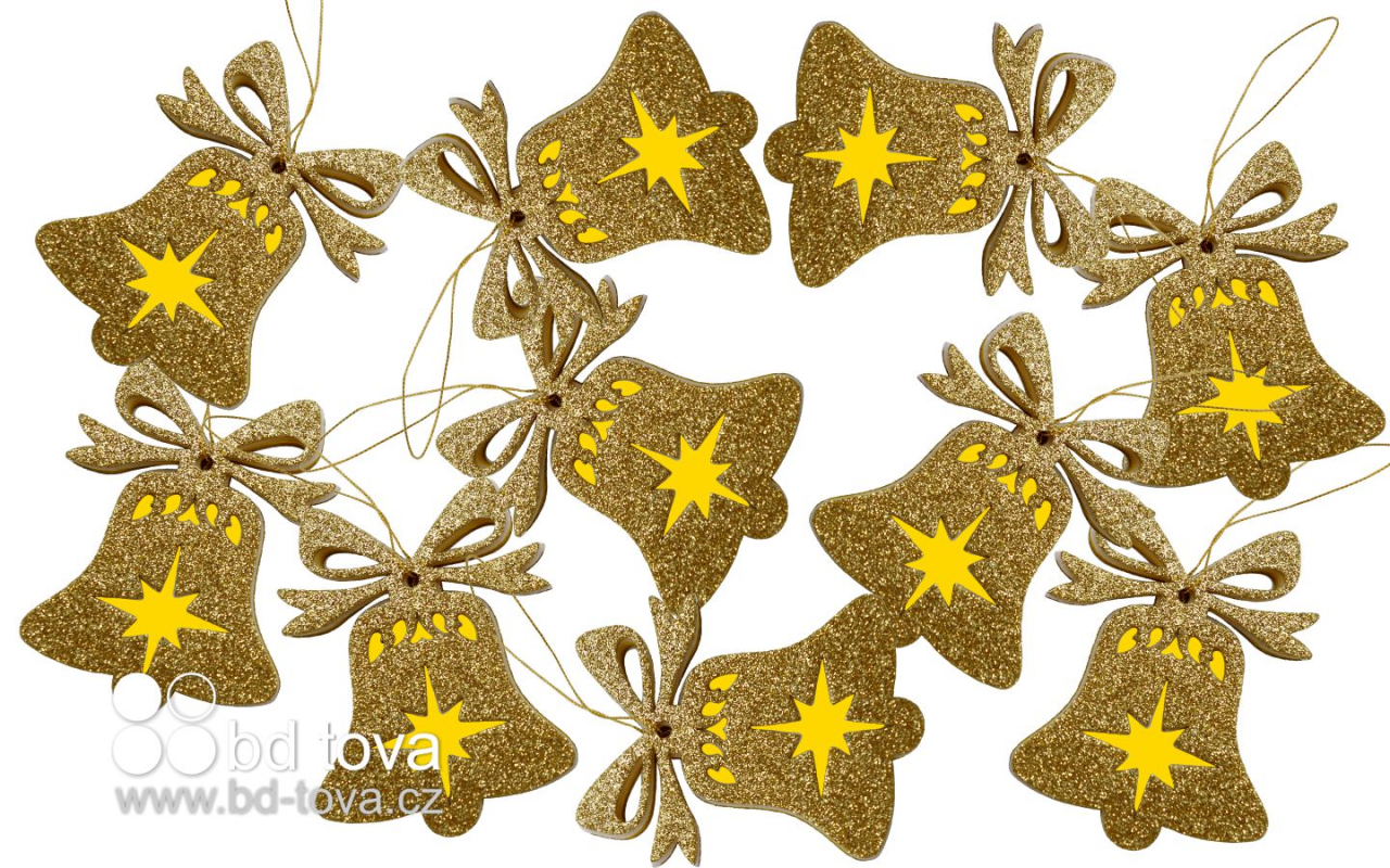 Zvonek prořezávaný zlatý třpytivý - závěs 10 ks